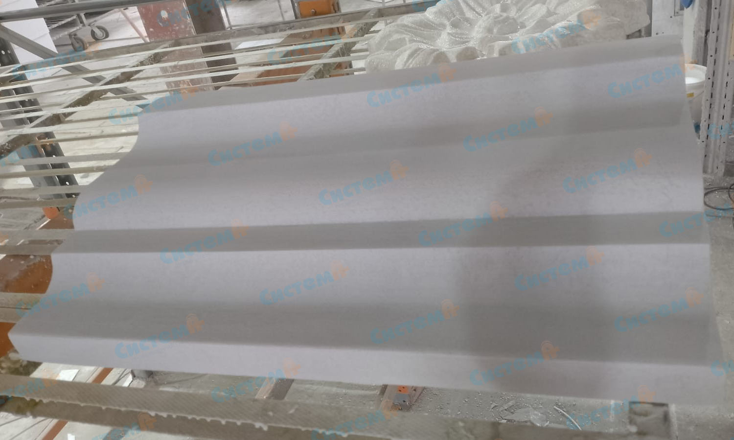 Каждый элемент был изготовлен в двух вариантах — из более легкого пенополистирола и из плотной минеральной ваты. Затем мы нанесли на них специальное защитное покрытие, которое придает декору прочность, долговечность, продлевает его срок службы.